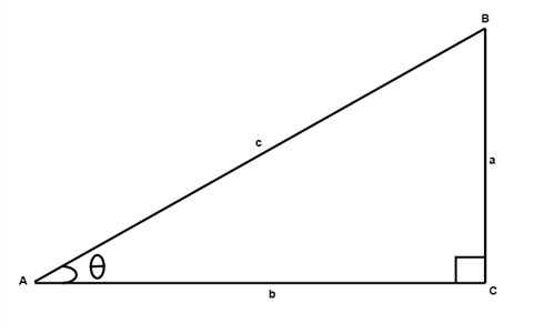 A trigonometric function of an acute angle in a right triangle that is equal to the ratio of the oppostie side to the longest side and is used to find lengths of similar right triangles.