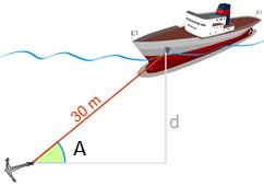 If the measure of Angle A is 56 degrees, how deep is the water under the boat? Round to the nearest hundredeth.
